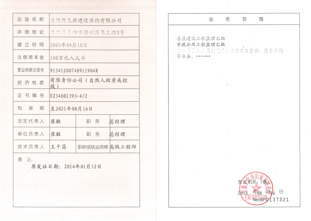 工程監(jiān)理資質(zhì)乙級(jí)