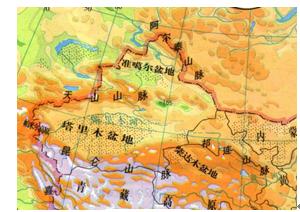 冰輒沉降理論認為:山脈的形成并非板塊水平運動的結(jié)果,而是地殼區(qū)域性沉降而造成的相對上升,起決定作用的是重力作用下的地殼區(qū)域性沉降,圖2所示是新疆地形圖圖中明顯可以看出地殼垂直運動的跡象。