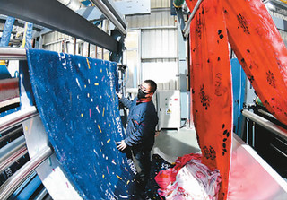 江蘇省連云港市金融機(jī)構(gòu)日前對認(rèn)定的142家疫情防控重點(diǎn)保障企業(yè)加大對接服務(wù)力度,落實(shí)優(yōu)惠信貸資金23.29億元,建立貸款發(fā)放綠色通道,優(yōu)先保障企業(yè)融資需求,助力企業(yè)加快復(fù)工生產(chǎn)。圖為在連云港海州經(jīng)濟(jì)開發(fā)區(qū),工人正在加工生產(chǎn)一批出口毛毯。